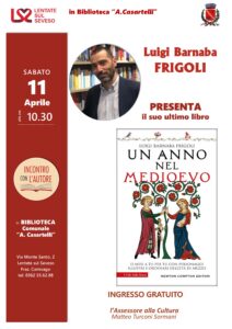 Il Comune di Lentate sul Seveso ha approvato l’iniziativa culturale della presentazione del libro UN ANNO NEL MEDIOEVEO con la presenza dello scrittore Luigi Barnaba Frigoli in Biblioteca comunale per sabato 11 aprile ore 10.30.