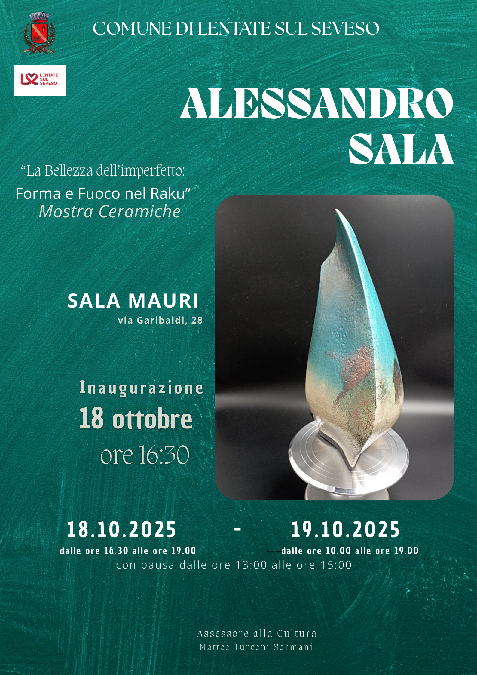 Nell’ambito delle iniziative della Festa di Lentate sul Seveso, la Sala Mauri ospiterà la mostra di ceramica di Alessandro Sala in collaborazione con l’ufficio cultura comunale.