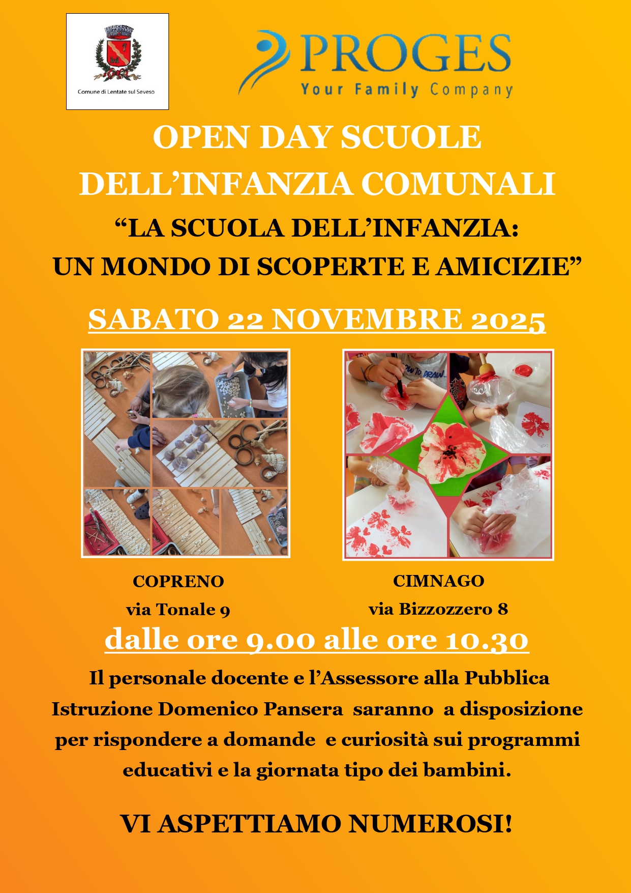 Le scuole dell’infanzia comunali di Copreno (via Tonale, 9) e di Cimnago (via Bizzozzero, 8), Vi aspettano sabato 22 novembre p.v. per farsi conoscere.