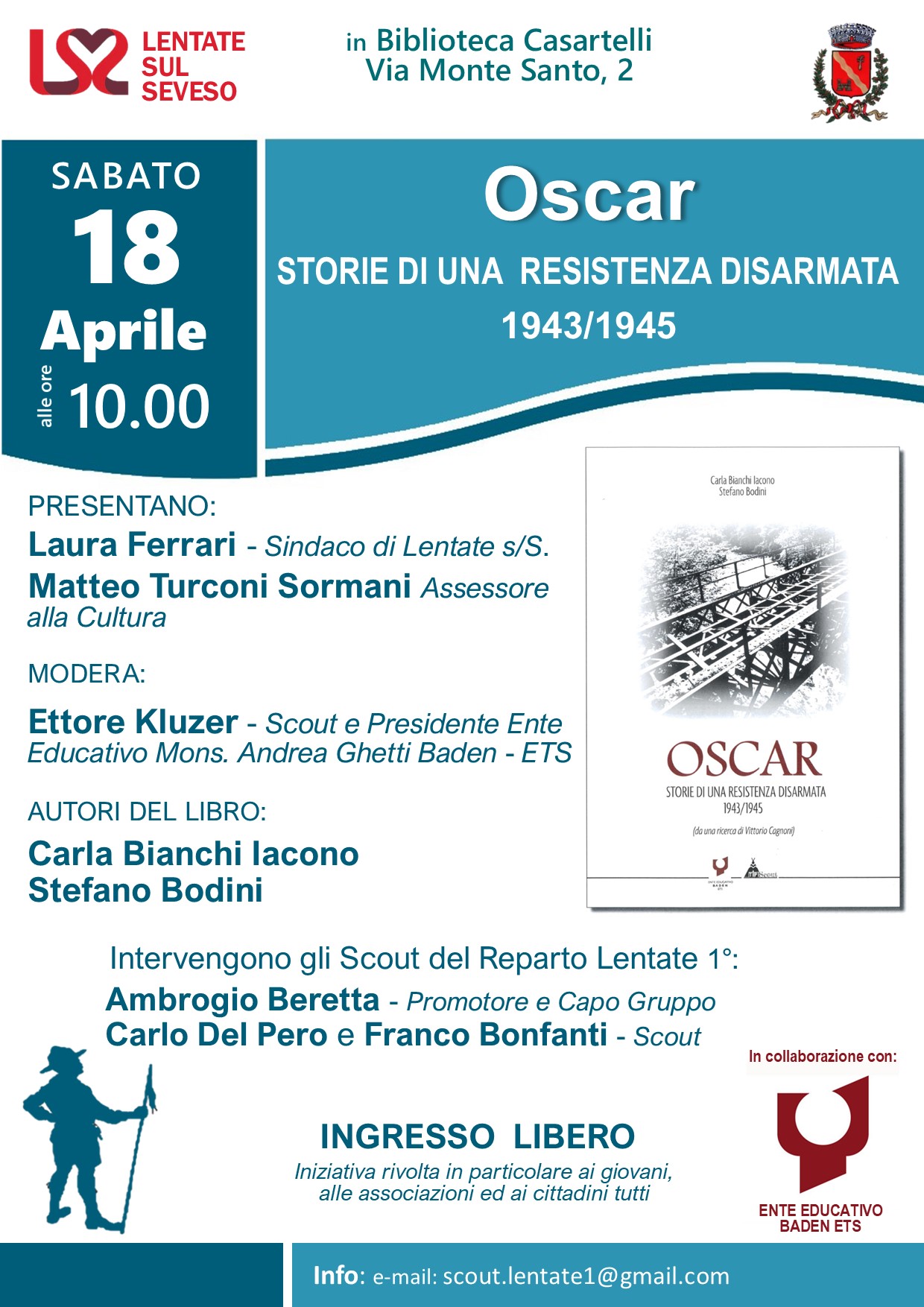 In collaborazione con Ente Eductivo Baden ETS, il Comune di Lentate sul Seveso ha approvato l’iniziativa della presentazione del libro “OSCAR storie di una Resistenza disarmata 1943/1944” presso la Biblioteca comunale “A.Casartelli” di Camnago.