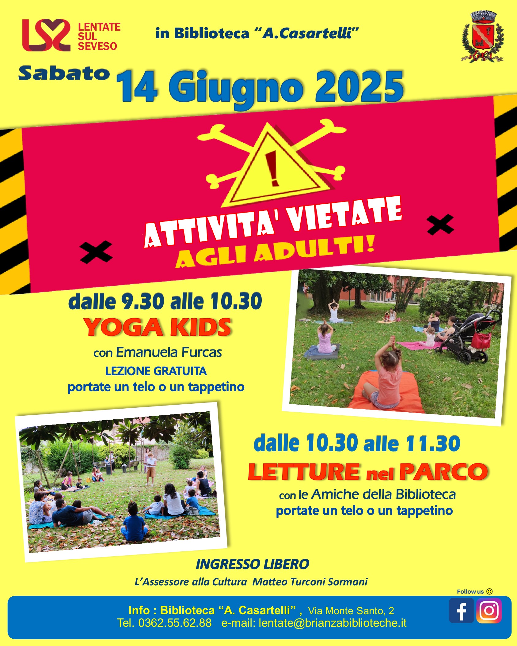 Sabato 14 giugno 2025, presso la Biblioteca “A. Casartelli”, via Monte Santo 2 – ATTIVITA’ VIETATE AGLI ADULTI
