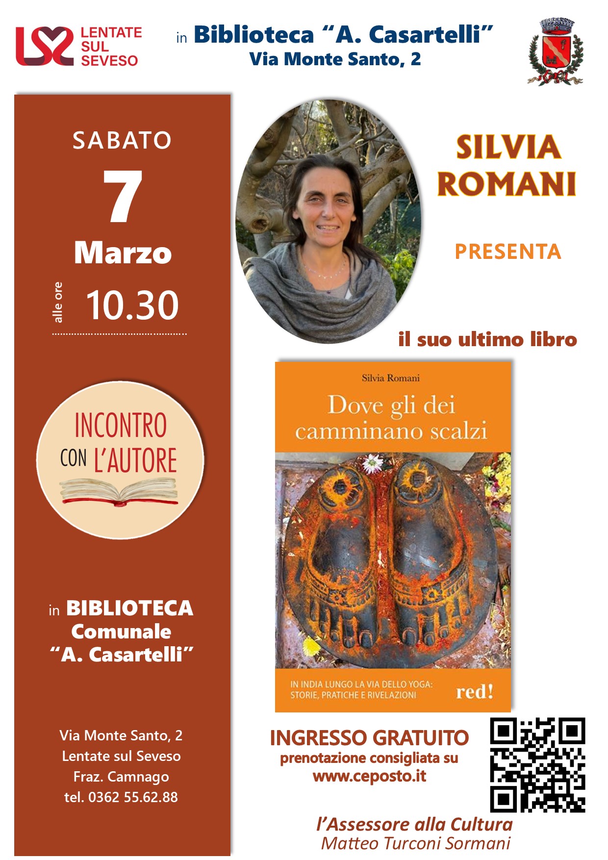 L’assessorato alla cultura ha approvato l’iniziativa della presentazione del libro “Dove gli dei camminano scalzi” con l’autore Silvia Romani.